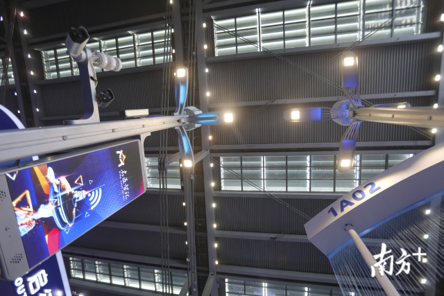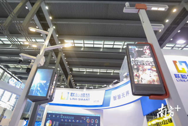 高交会现场,深圳企业名家汇展出一款模块化多杆合一多功能智慧杆,搭载5G基站、AED应急设备、摄像头、广播音柱等设备,模块化滑槽设计可按需加载更多新技术设备,比如给无人机充电。