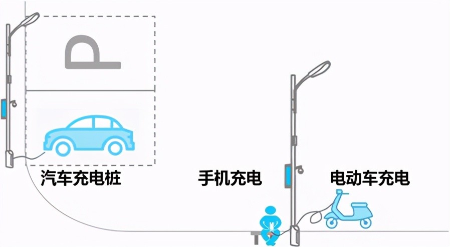 基于智慧灯杆的能源除满足多功能灯杆多种自身设备功能正常工作外,还可对外提供多种供备电服务,可提供的业务包括但不限于: 充电桩、USB 接口充电、信号灯、摄像头备电、无人机充电等,用户通过手机 App,通过手机 App 还可实现各类业务的预约和查看。在条件允许的情况下智慧灯杆可搭载太阳能板或者风力发电设备,实现城市绿色能源。